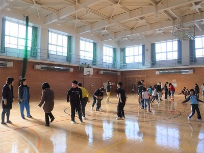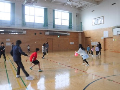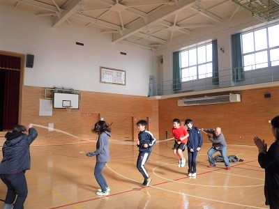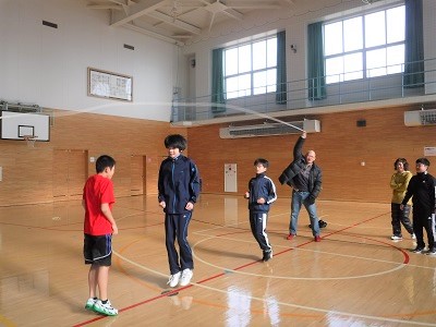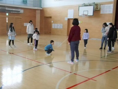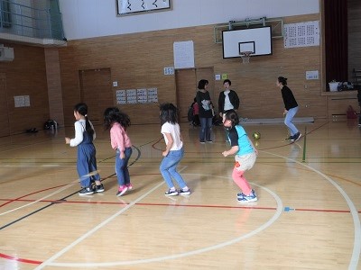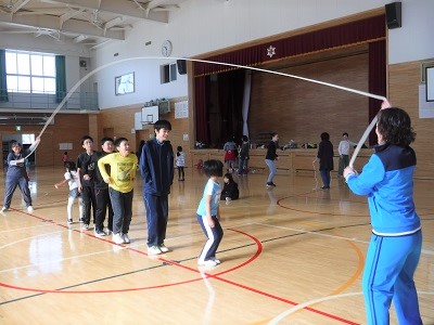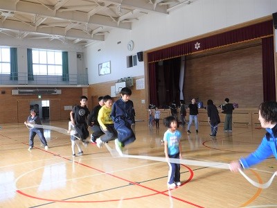 | 平成30年12月22日(土) 西小の体育館で、縄跳びをして遊びました。 大人も子どもも、長縄跳びの「連続跳び」の記録に挑戦! 皆んな、気持ちの良い汗をながしました。 ちっちゃい子も、跳べるようになりましたヨ! 後半はドッジボールです。 小さい子も一緒でしたが、自然と手加減をする小学生の子供たちに成長を感じました。 |