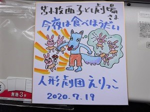 7月16日の例会「今夜はたべほうだい」の人形劇団えりっこさんを招いて事後交流会を9月6日午前10時~昼まで事務所にて行います。 コロナ自粛後初めて例会開催に向けて悩み、迷い、心配した事や劇団さん側の思いを聞きあいましょう。 劇場は観るだけの会ではなく、劇団と一緒に作っていく会です。 コロナを心配して観なかった会員さんも是非参加してください。 皆の声を聞かせて下さい。 参加人数によっては会場変更もあるので、早めに連絡をお願いします。 尚、参加費を一家族300円とさせて頂きます。マスクの着用をお願いします。 |