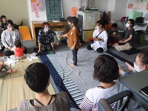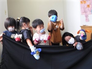 札幌の「人形劇団えりっこ」の坂下えり子さんを招ねき、事務所にて交流会をしました。 始めに「えりっこ」さんのミニ人形劇を鑑賞し、7月でのワークショップ以降事務所解放日で作った靴下人形を使い、子ども達がダンスを披露しました。 その後、えり子さんに是非けん玉パフォーマンスを観て欲しくて参加した男の子も発表しました。 後半はコロナ自粛後初めて、7月19日の幼児例会を取り組んだ時の思いや悩み苦労を出し合い、自粛中の劇団の様子や悩みを聞き合いました。 今回のコロナで、人と人が顔を合わせて話をする事の良さを再確認しました。 一日も早くコロナが収束する事を願います。 |