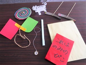 身近な材料で、低予算で遊べる物が作れます。 そう言った情報を持っている会員さんを講師に、たくさんの作品を作りました。 これからの事務所解放日の工作で作っていきましょう。 |