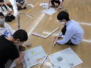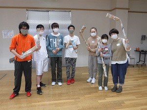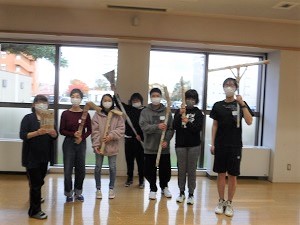 雨で中止となったBBQの次の活動として 10月24日活動センターで「秋の大運動会」を開催しました。 中学、高校、青年で構成している中高青が企画進行して ①ジャングルゴリラ ②だるまさんが転んだ③新聞ホッケー で交流を深めました。 ホッケーのスティックは1日分の新聞紙とガムテープで各自が工夫を凝らして作りました。 パックにテニスボールを使い3チームに分かれての試合では終始笑い声に包まれていました。 閉会後中高青が反省会と次回の集まる日を決めて解散。 |