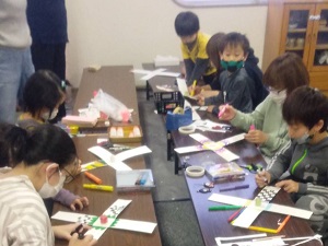 | 平成31年1月9日(水) のぞみコミセンで、プラ板でマスコット作り。 各自、お気に入りの絵を描き、オーブントースターで焼き上げました。 昔に流行った遊びですが、久々に楽しい時間を子供と過ごせました。 後半は、トランプ。 「金持ち貧乏人?」「ブタのシッポ」・・・など。 定番の「ババ抜き」で締めくくりました。 |