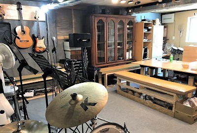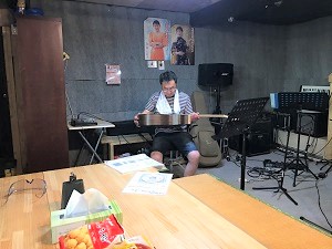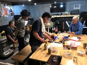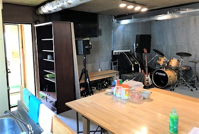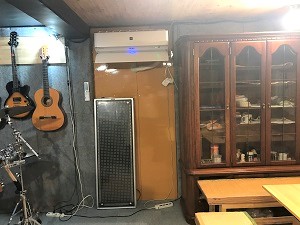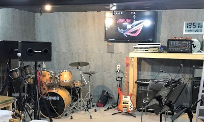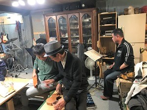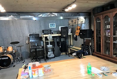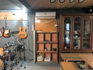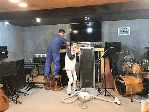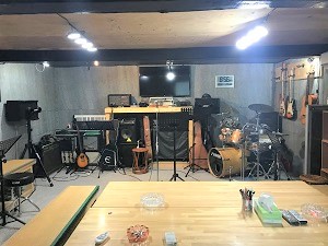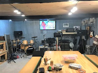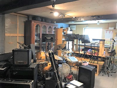 途中、乾燥の空き時間に飯野さん宅の練習場を見せてもらいました。RC構造の1F部分をバンドハウスにしたもので、超豪華版です。