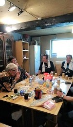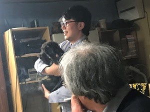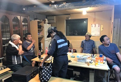篠さんと「年寄りには大変だよ」とコンテナに楽器片づけ。