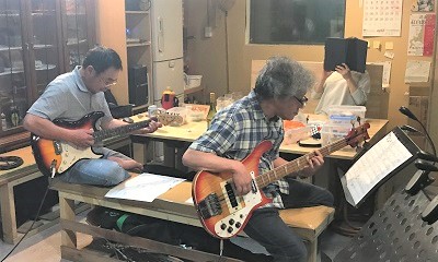 最近、またバンドマンが増えた。太田さんという。聞くと、コンテナの近所に住んでいるらしい。数週間前に「気になっていて」と訪ねて来られ、アイヌネギなんかを持ってきてくれたりしてたんだけど、なんとギター弾きだった。しかも、そこそこ上手い。そしてベースとボーカルができる友人(山崎さん)も連れてきてくれたんで、また新しいバンドができちゃった。
