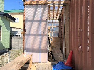 終わってから色々な話しをし、「材料あるんでしょ。入口のサイディングも、やっちゃるよ」なんて言ってくれました。