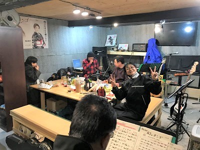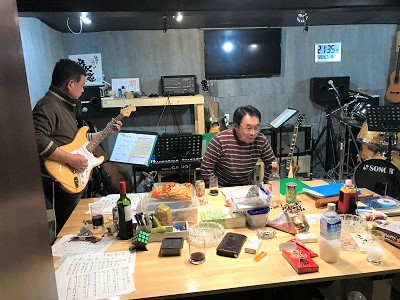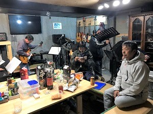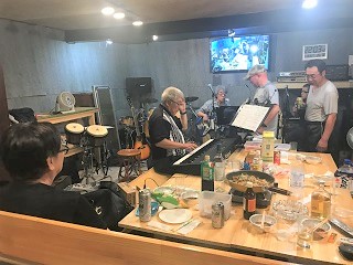 本番まで練習残りわずかなのに、呑気に飲んで音楽談義に花咲かせてます。