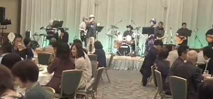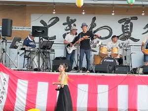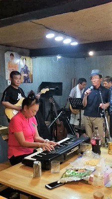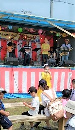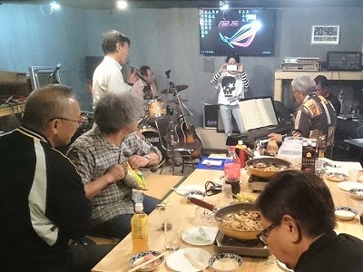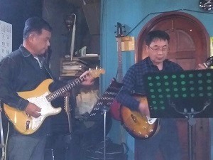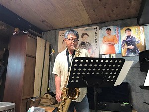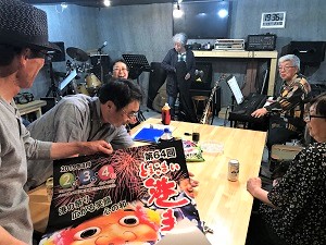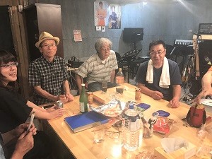 焼肉でオモテナシし、演奏はブルーサウンズ。ギターの太田さんも参加。