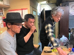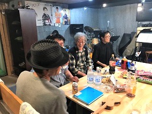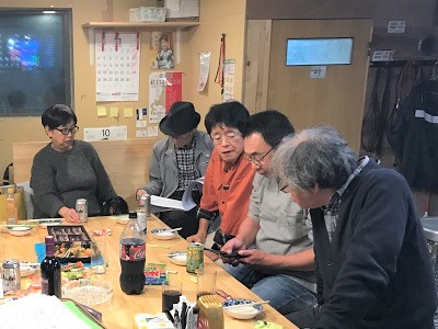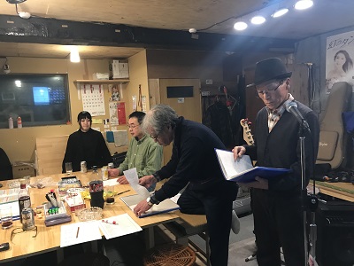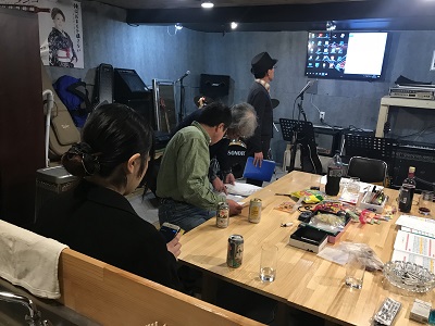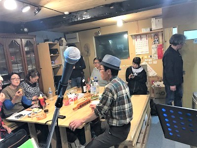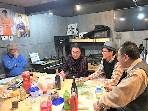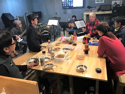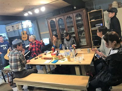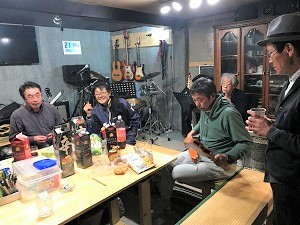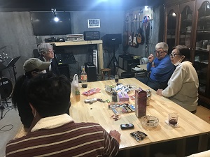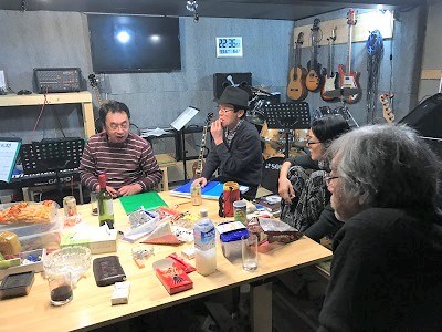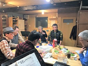 夜は恒例の「とまライブ夜会」。本日の参加者は、太田/千明/佐伯/加藤/池田/山崎/新美/吉田。
