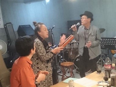 夜はブルーサウンズの練習。近所の太田さんも遊びにきました。