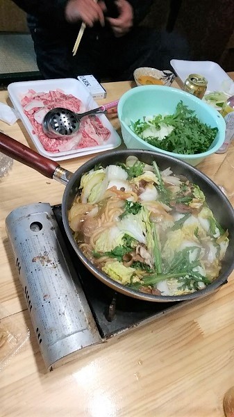 太田さんが焼肉と野菜を持ってきてくれ、さっそく成吉思汗のスタート。