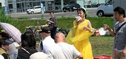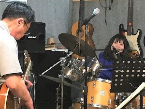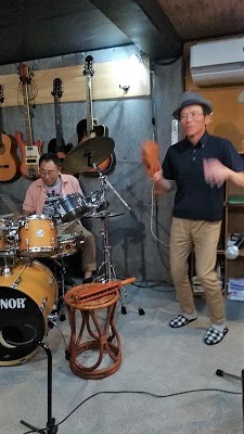 ウチらの曲に合わせ、新美さんのパワフルなパーカッション裁きがみごとでした。