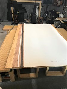 床を清掃し、洗い、乾燥させてからの貼付け作業。半分出来ればオーケーの計画が、2人して調子に乗ってほとんどやっちゃいました。が、そこで床作業は止まったまま。