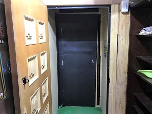 これまで、入口部分に人工芝みたいのを貼って外からの土誇り対策としていたが、多少の効果しかなかった。誰も入る時に靴払わないものなぁ(自分にしても)。