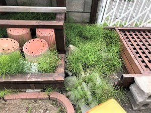 どうしても入口部に小粒の土砂が入いり、掃除が大変。毎回のホウキとチリトリとの格闘を、少しは軽減したかった。