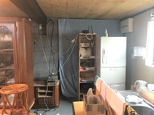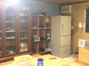一部、サイドボードなどが一人では動かせなく、そこだけ未施工で延び延びになっていたもの。昼頃に瀬っちゃんとサイドボードを移動し、その後はオーデオや冷蔵庫など移動し床マットを貼り終えました。で、また冷蔵庫などは戻せたんだけど、怪物のサイドボードで挫折。
