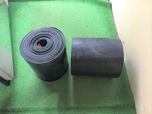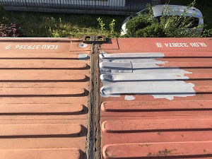 ハッチ式のコンテナトラックに貼るという分厚い樹脂テープと専用のコーキング材で仕上げました。