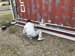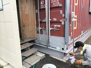 コンテナにペンキが塗ってあるではありませんか・・・。