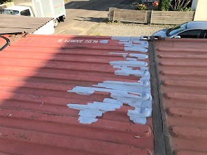 前回施工のブチルテープとかを剥がすのがまず一仕事。綺麗に清掃してから、いよいよ防水工事。持ってきてもらったコーキング材、4~5本ほとんど使っちゃいました。施工してくれた飯野さんには本当に頭が下がります。