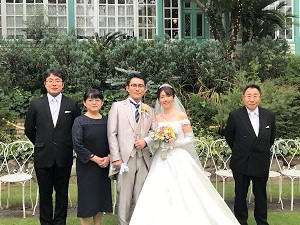 一緒に南国を満喫した吉田さん夫婦とチアキ。